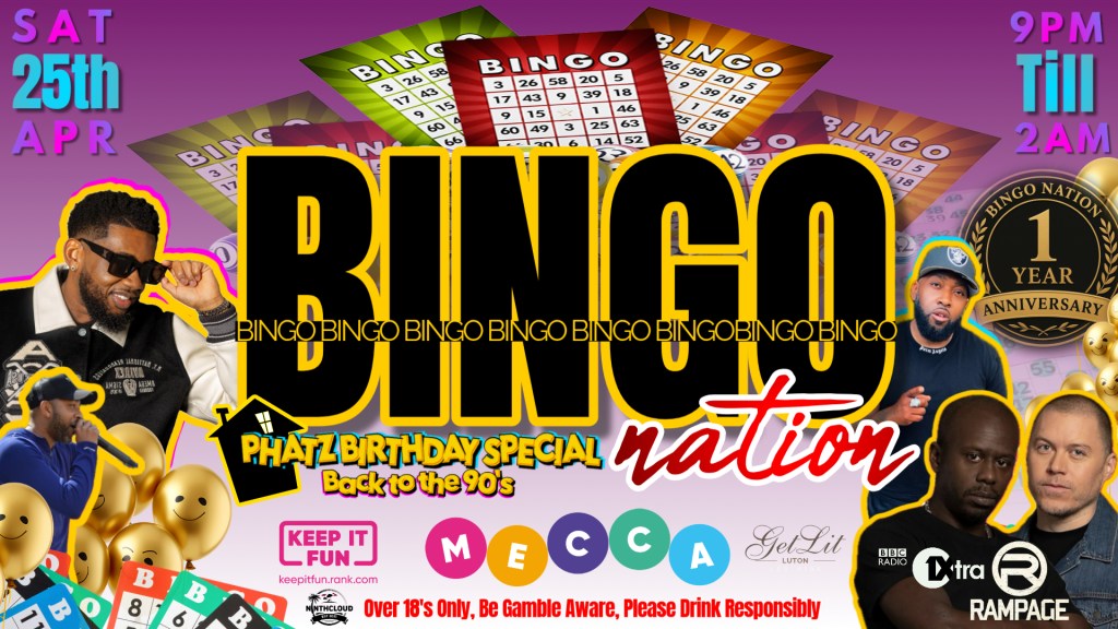 BINGO NATION LUTON 1ST YEAR ANNIVERSARY DJ PHATZ BIRTHDAY BACK TO THE 90’S